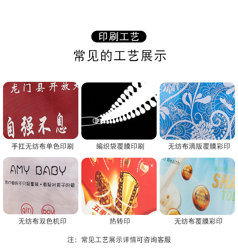 【印刷工艺】 可为客户印刷LOGO、文字,印刷工艺为丝网印、机器印刷、热转印、复膜彩印。